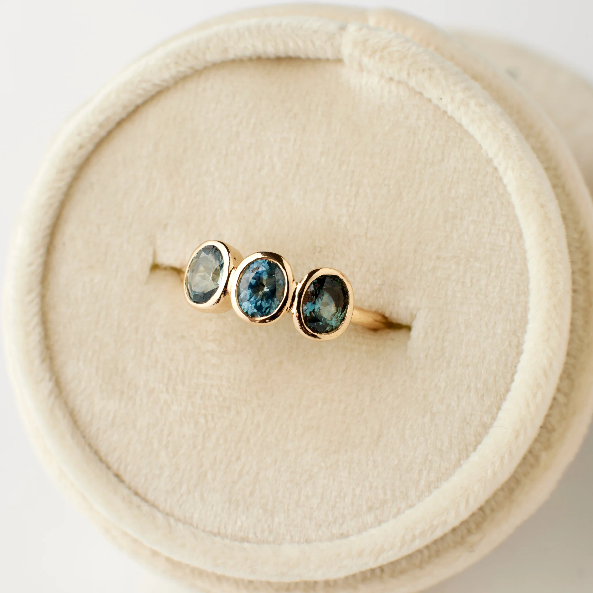 How many are available: Only one! This is a one-of-a-kind design. We won't find another 3 sapphires exactly like these!