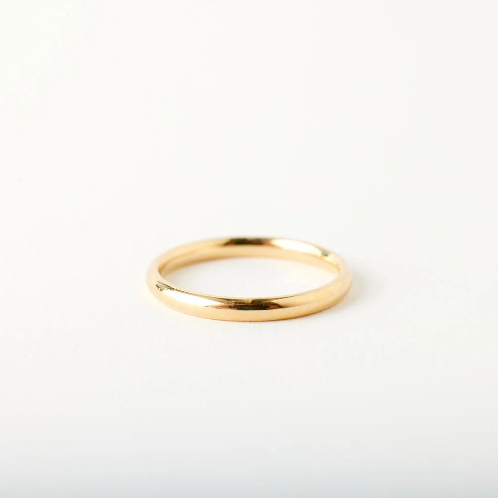 Our Anne Marie rings are the perfect band to add to your stack. With a subtle half-round shape and a light-weight feel they make a lovely and classic wedding band or stacking ring. Made in three widths and in your choice of 14 karat yellow or white gold.Â
