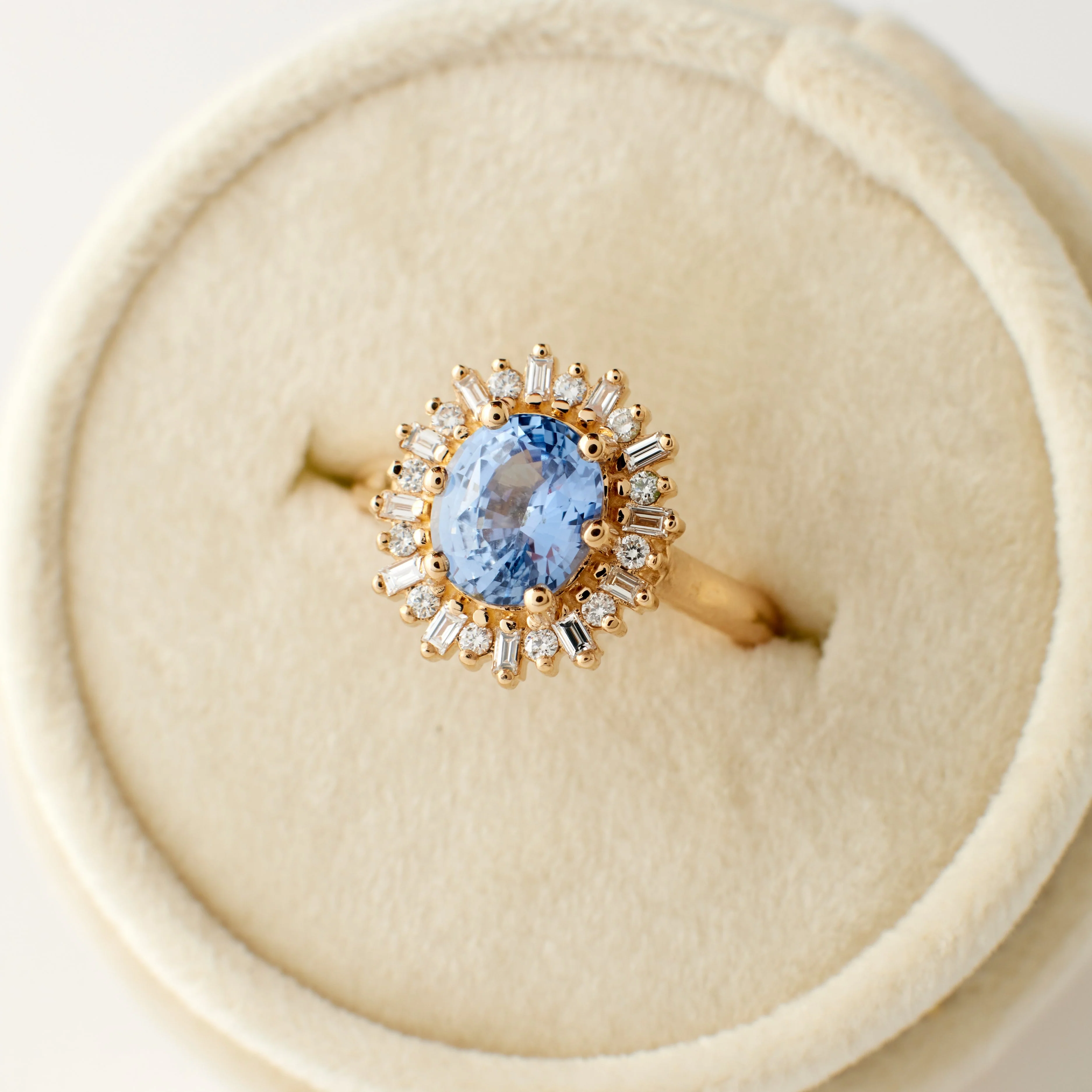 Why it's special: We haven't seen a light blue sapphire with this much sparkle, perhaps ever! Wear the Arielle as a cocktail ring, a right-hand ring or an engagement ring!Â