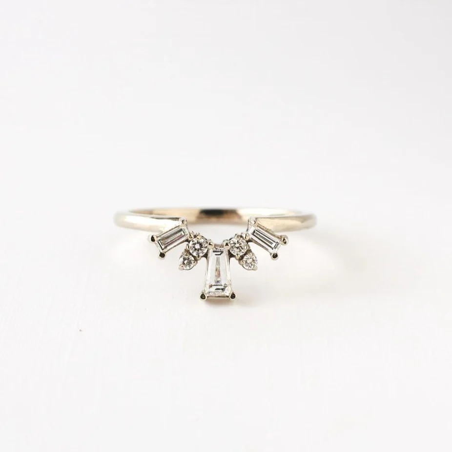 Whether youâre looking for a band to nest around an engagement ring or one to amplify a stack, the Delilah ring will always do the trick. Featuring a combination of round and baguette diamonds, this ring showcases the beauty of the gemstonesâ geometric angles and incredible shine.