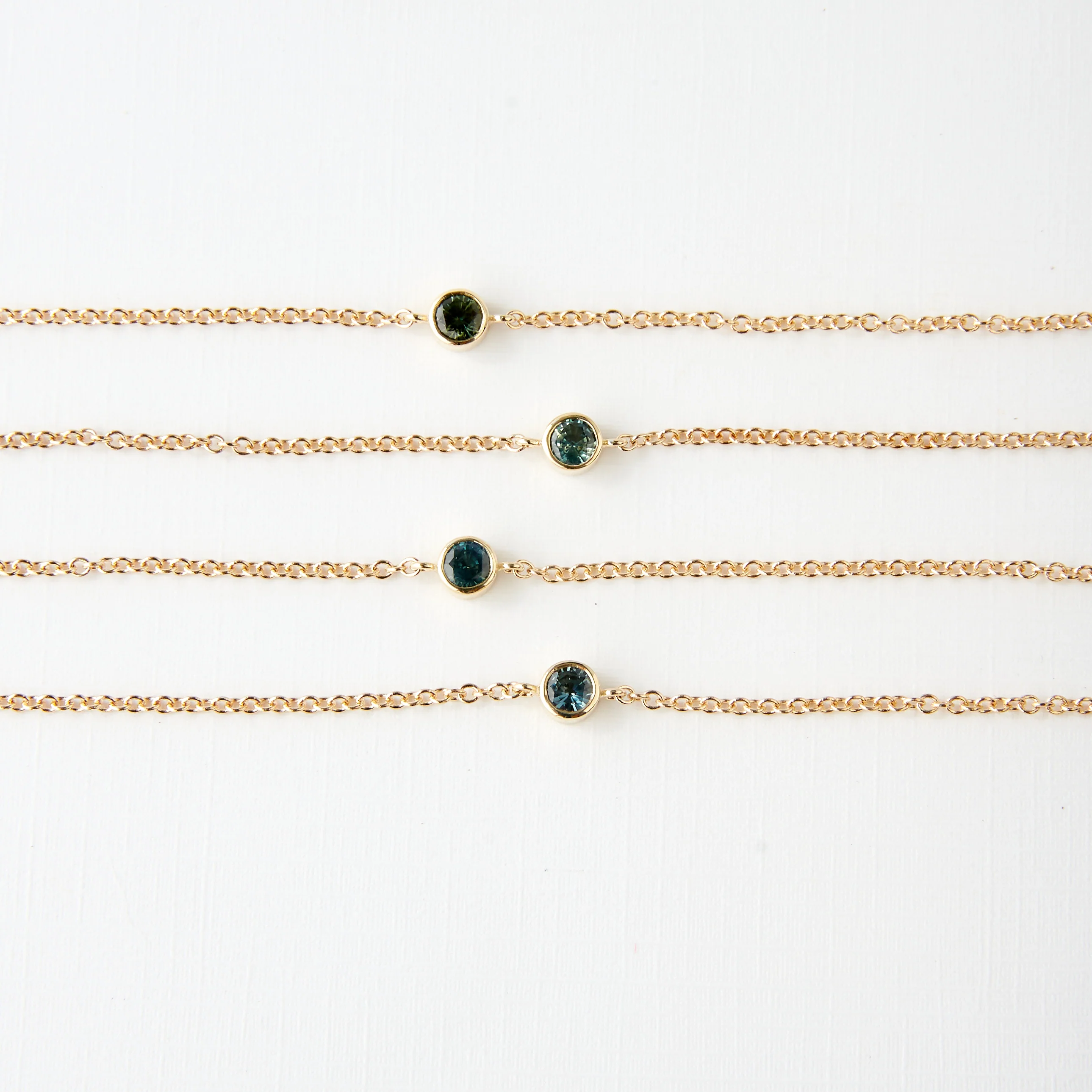 Meet your perfect layering bracelet. Made with a single sapphire in a bezel setting on a 14K gold chain, our Ellie bracelet is simple, elegant, and effortless. We love it mixed into a medley of gold bracelets!