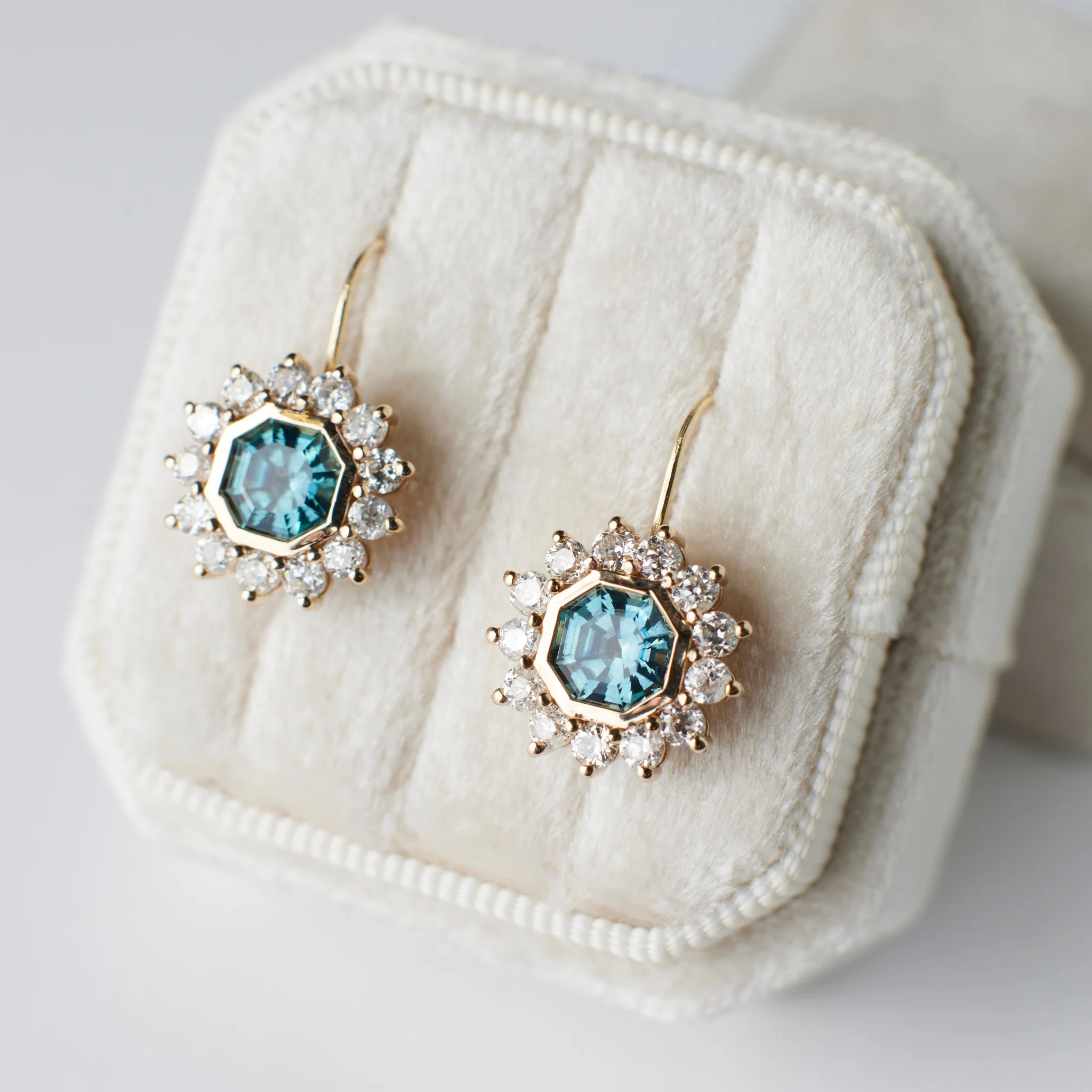 Florence Earrings - Teal Octagonal Montana Sapphires