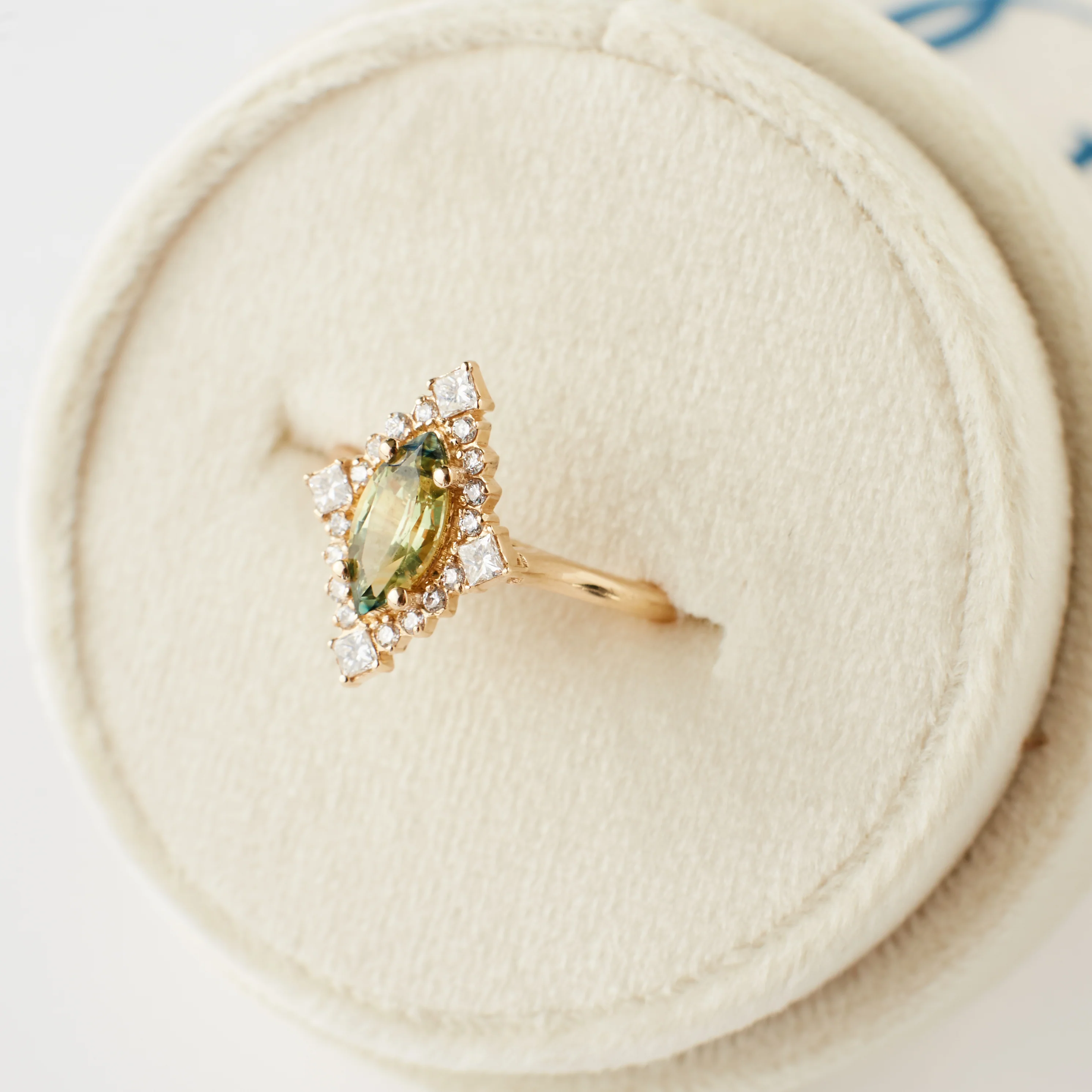 Marie Ring - .83 Carat Yellow Green Parti Sapphire