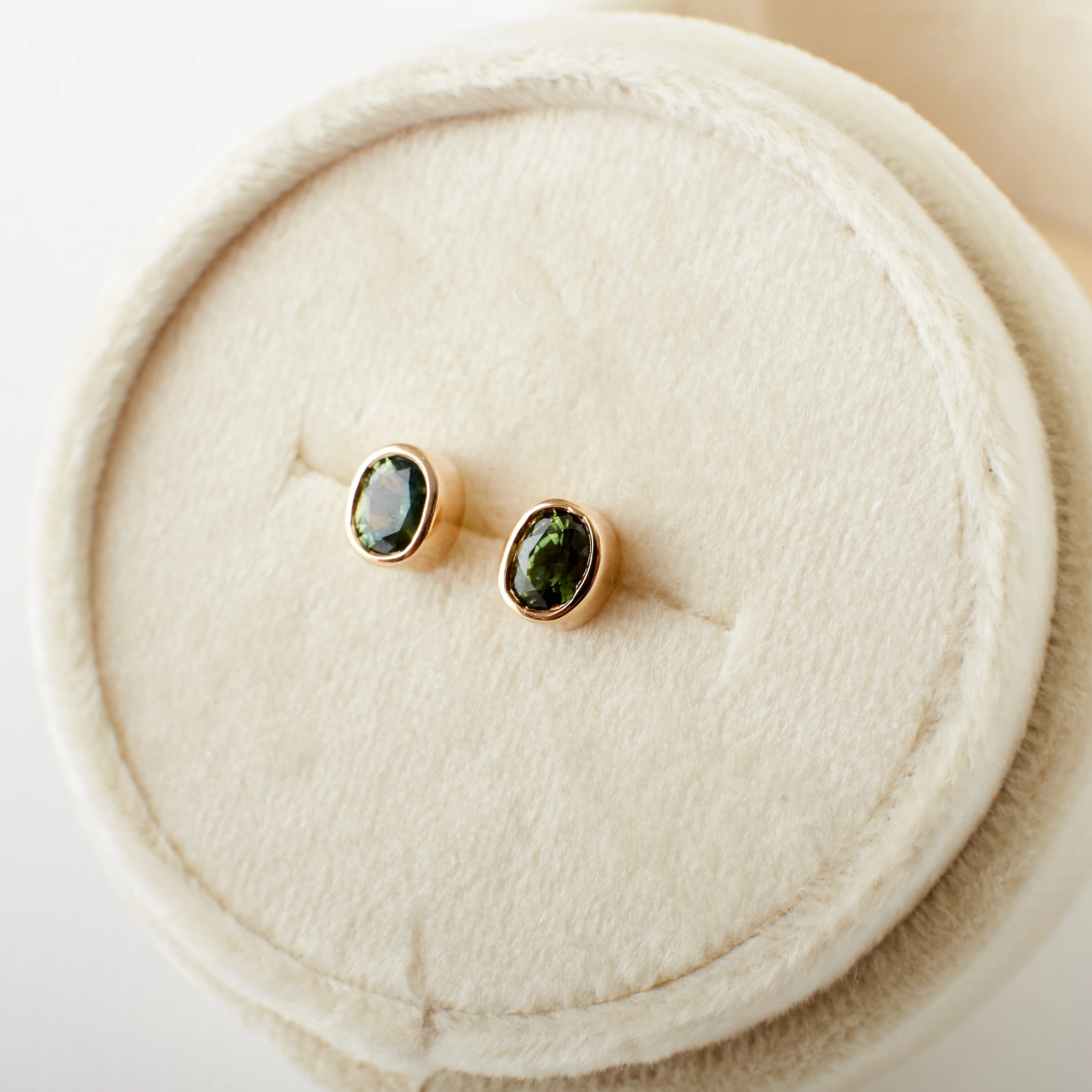 A new everyday favorite, the Samantha earrings feature a stunning set of green sapphires in a yellow gold bezel setting. As always, these earrings are set on a short post for maximal comfort should you decide to put them on and rarely take them off.Ā