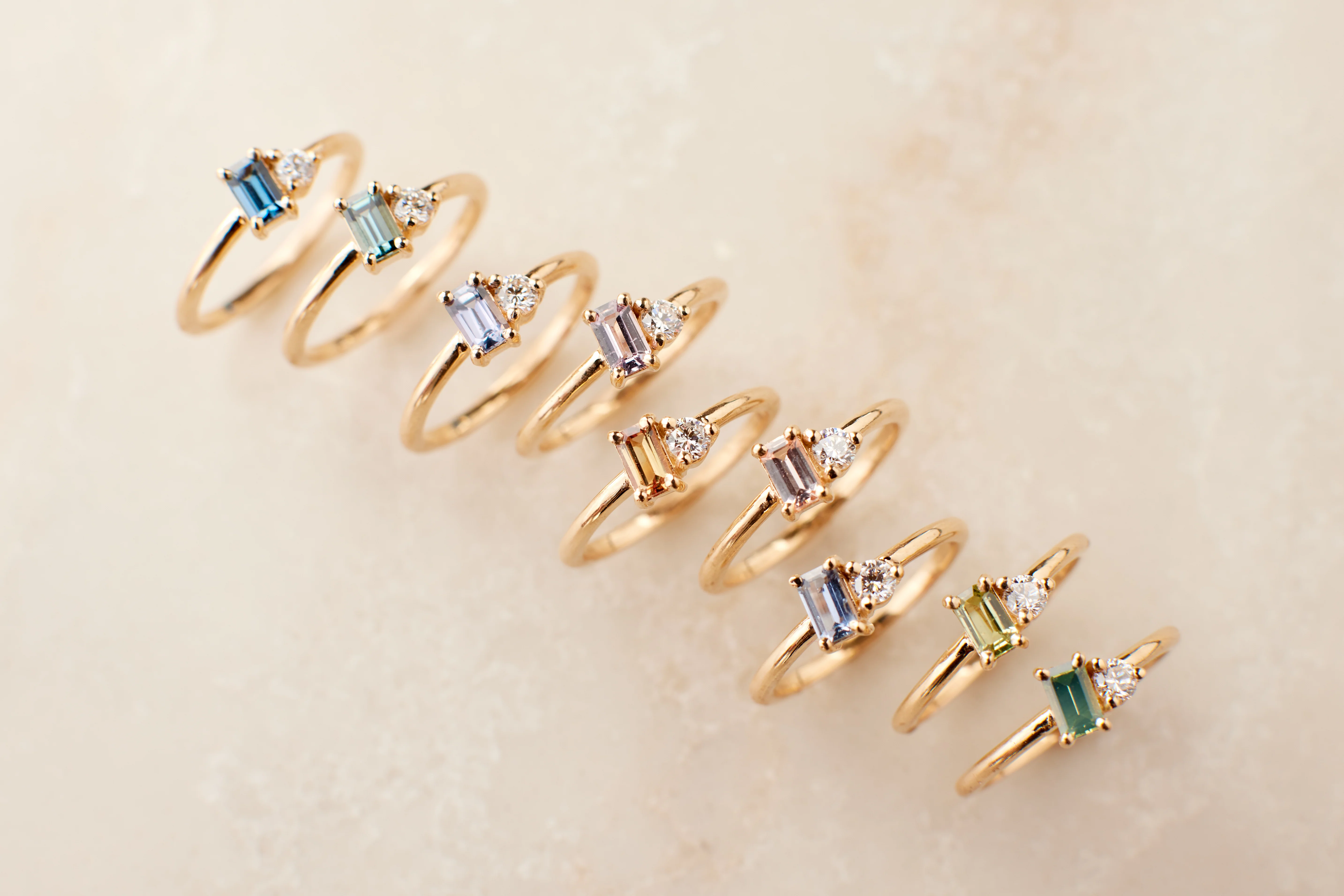 Why it's special: Our Simone rings celebrate the simplicity of a beautiful pair! Our limited collection of ten Simone rings each feature a different color sapphire and bright-white round brilliant diamond. This ring is set with the perfect color of blue sapphire.